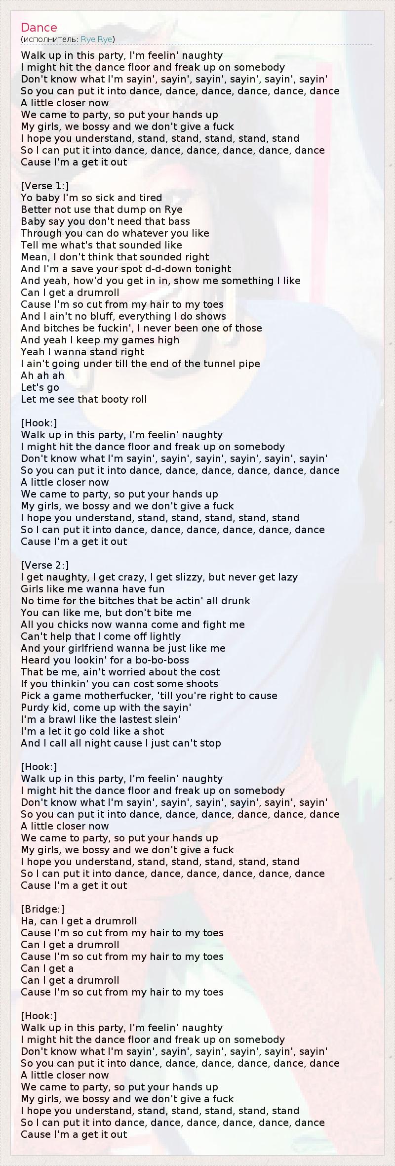Это интересно:Rye Rye is the stage name of Ryeisha Berrain, an American rapper and dancer from Baltimore, Maryland, United States signed to N.E.E.T. Recordings. She is currently writing and recording her debut album, Go! Pop! Bang!, scheduled for release in January 2011.Born:November 1990 (age 20)Years active:2000sFollow Rye Rye on twitterRye Rye's Facebook Early careerRye Rye began performing at the age of 16. She wanted to join the music industry... продолжение