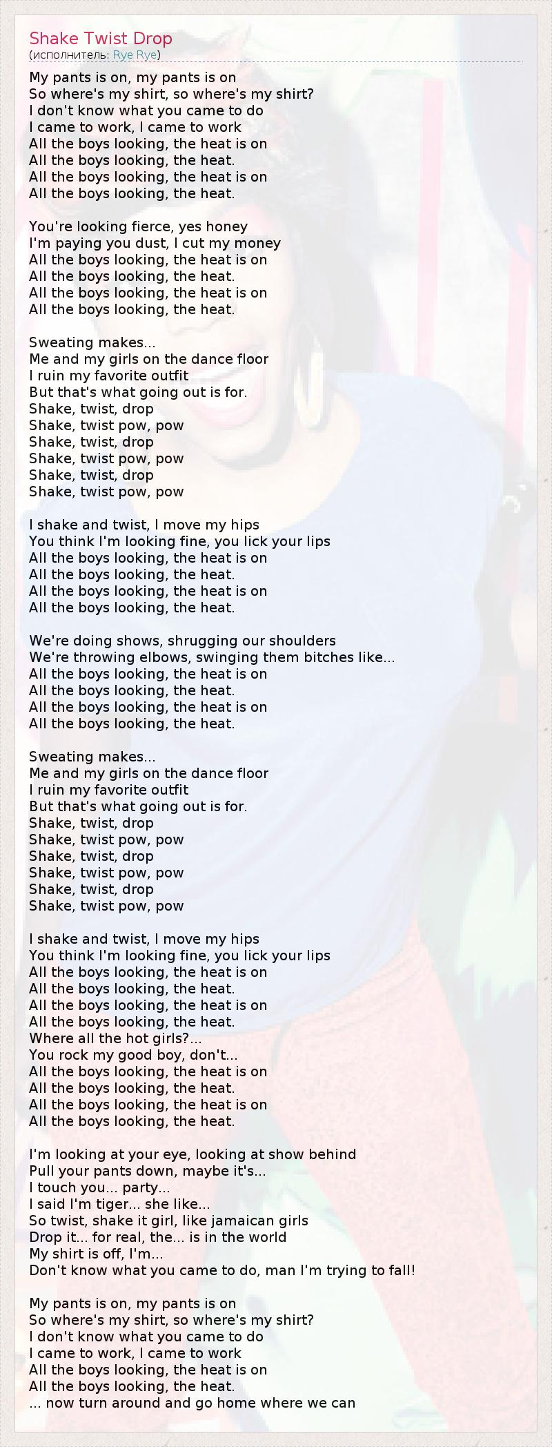 А как ты думаешь, о чем песня "Shake Twist Drop" ?