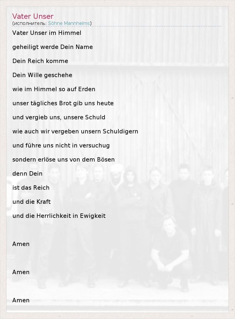 А как ты думаешь, о чем песня "Vater Unser" ?