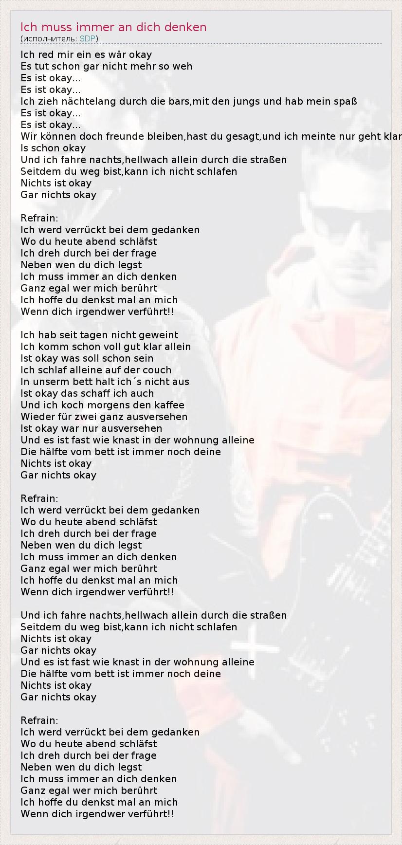 А как ты думаешь, о чем песня "Ich muss immer an dich denken" ?