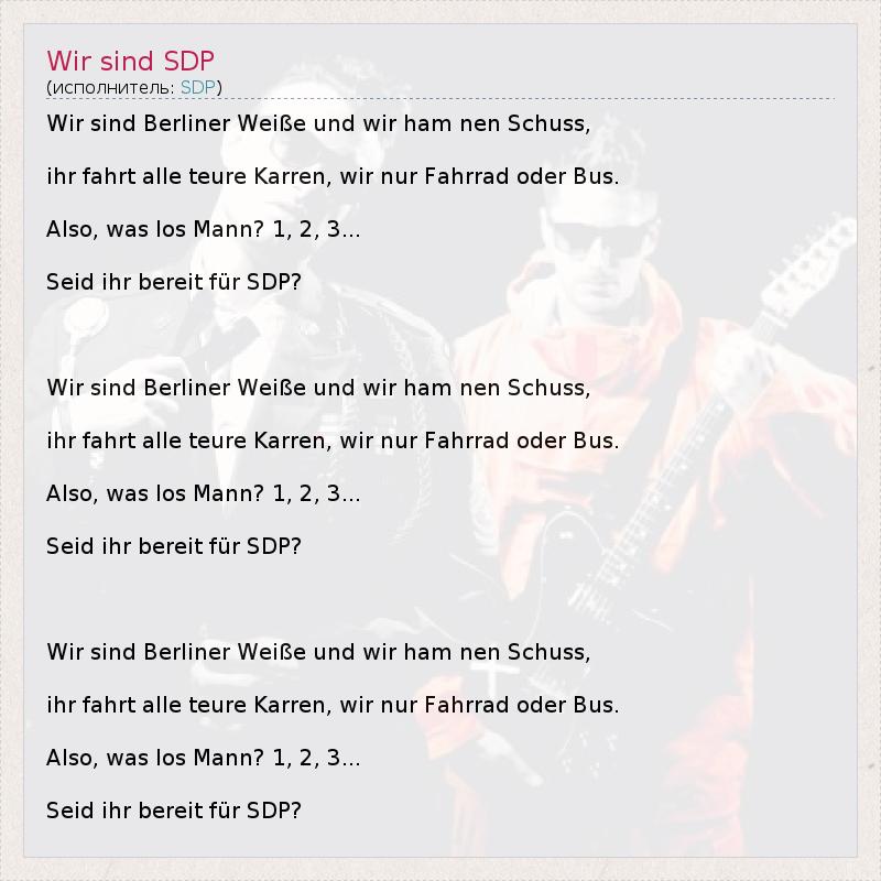 А как ты думаешь, о чем песня "Wir sind SDP" ?