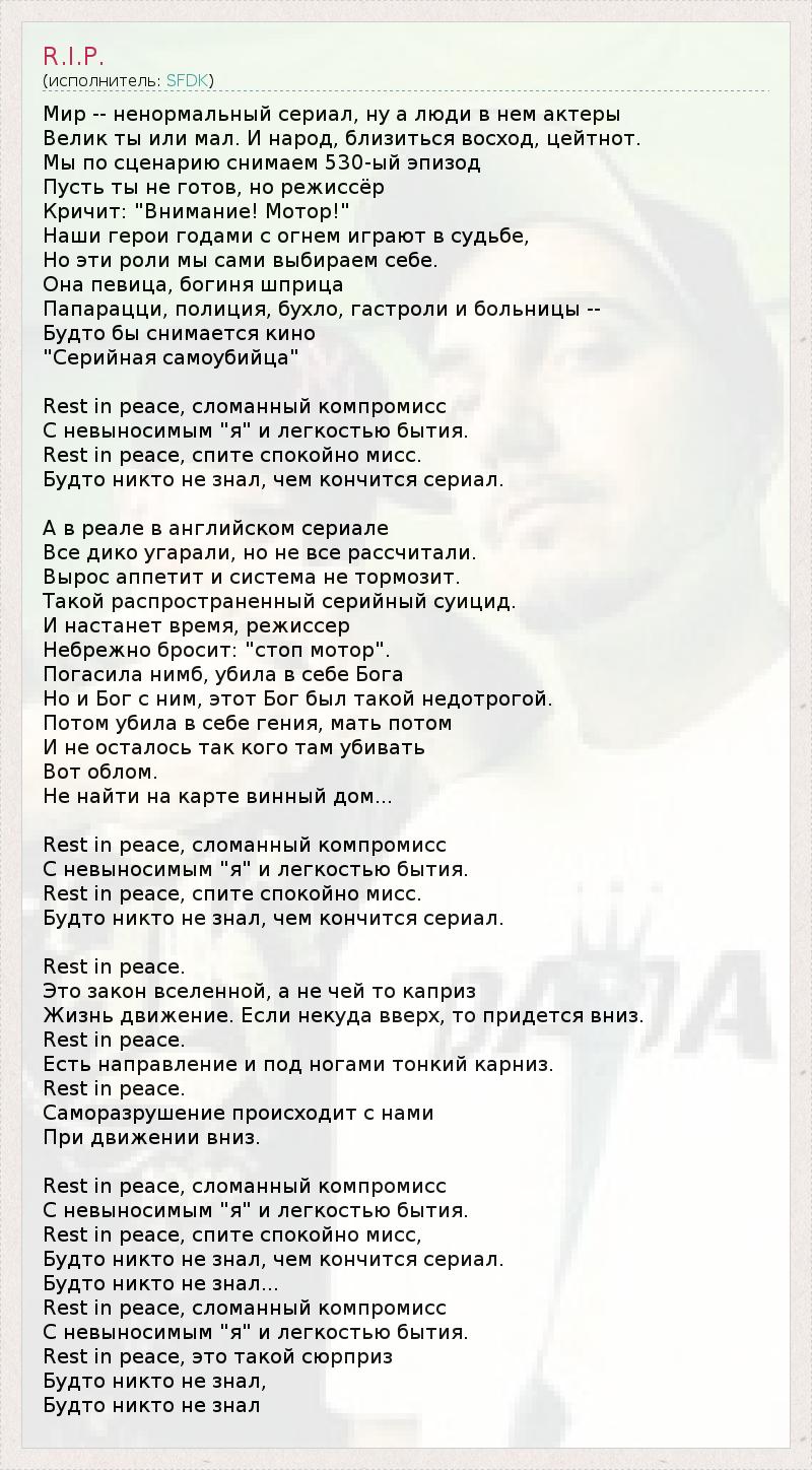 Мир -- ненормальный сериал, ну а люди в нем актеры