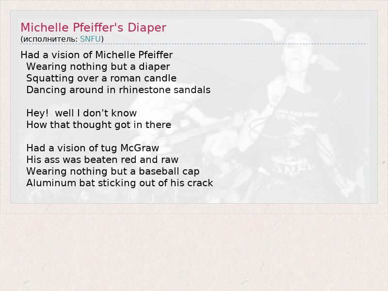 А как ты думаешь, о чем песня "Michelle Pfeiffer's Diaper" ?