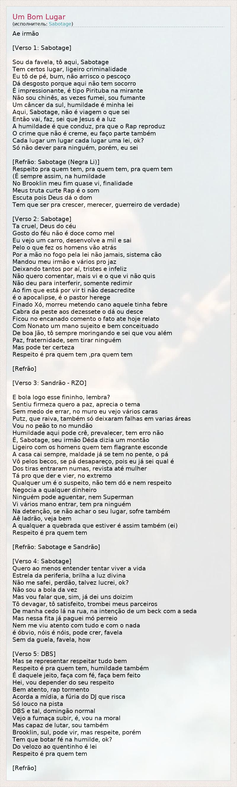А как ты думаешь, о чем песня "Um Bom Lugar" ?