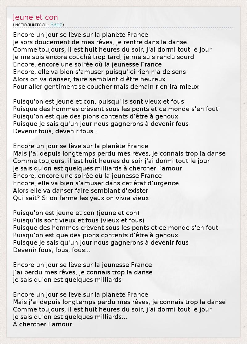 А как ты думаешь, о чем песня "Jeune et con" ?
