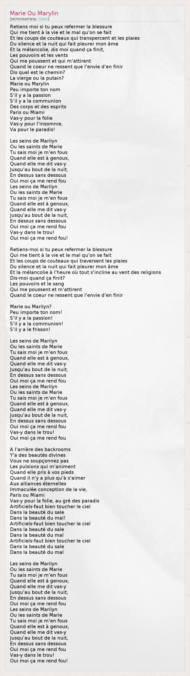 А как ты думаешь, о чем песня "Marie Ou Marylin" ?