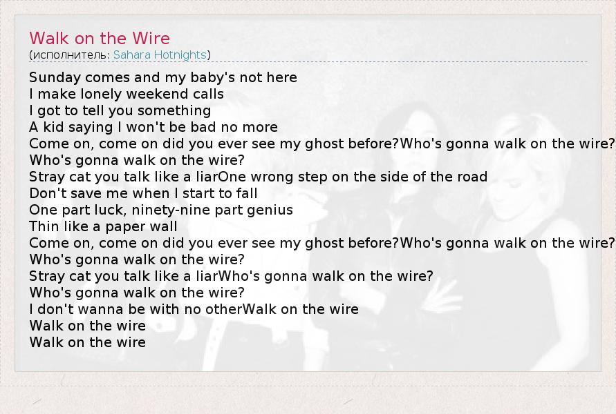 А как ты думаешь, о чем песня "Walk on the Wire" ?