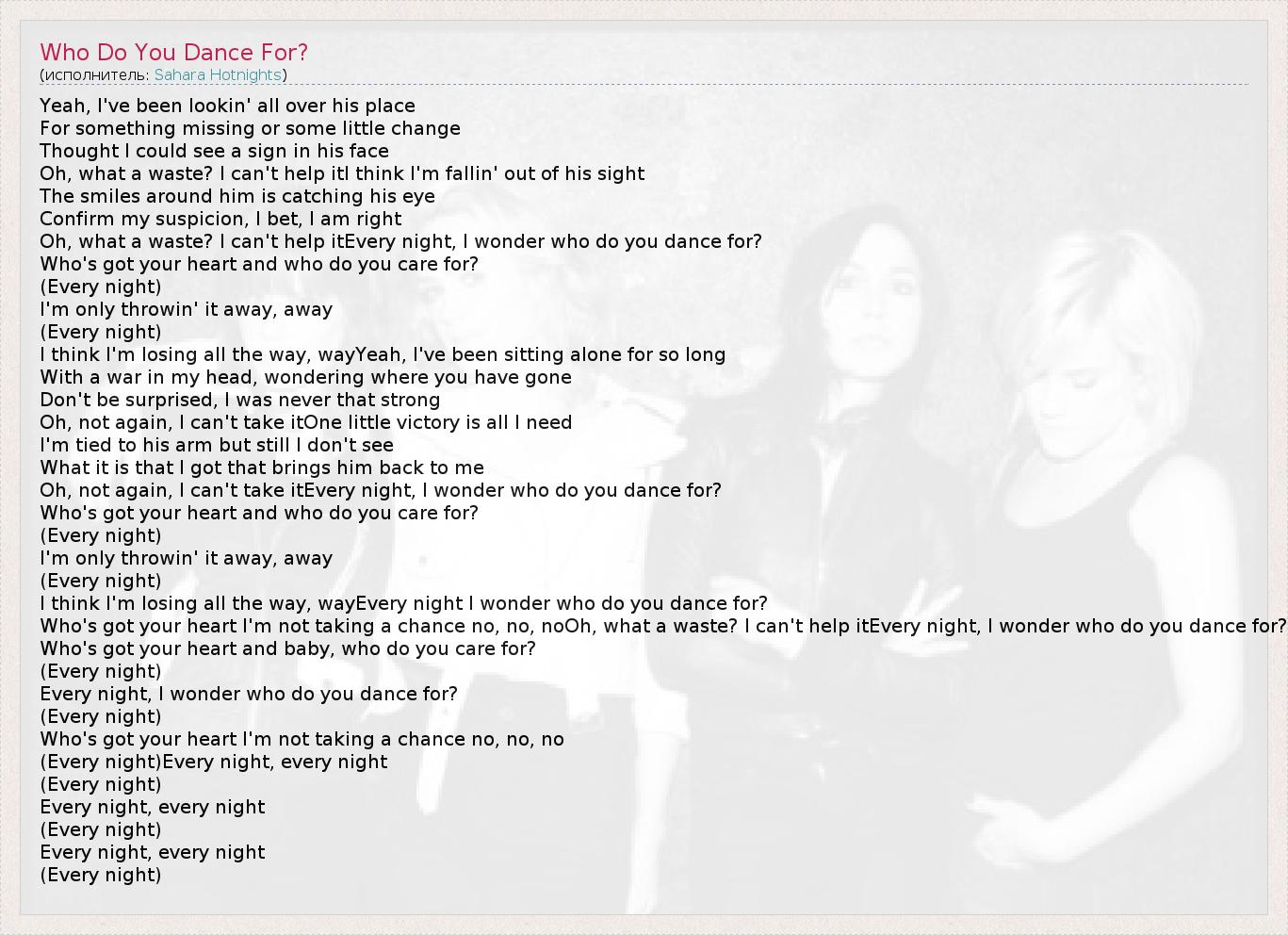 А как ты думаешь, о чем песня "Who Do You Dance For?" ?
