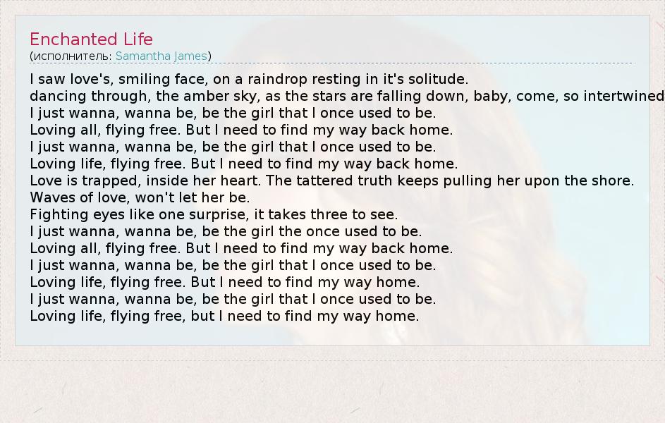 А как ты думаешь, о чем песня "Enchanted Life" ?