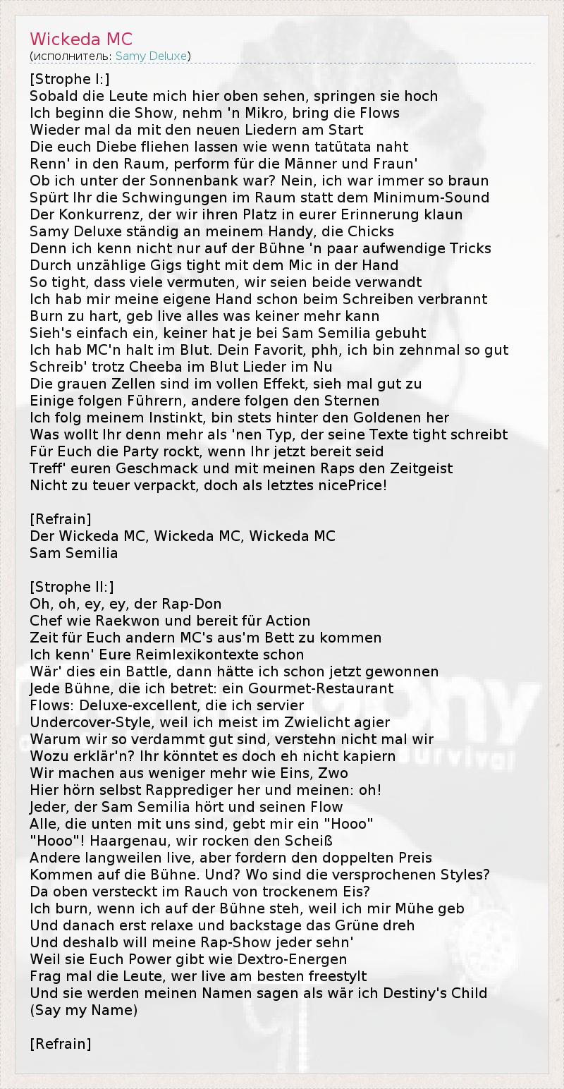 А как ты думаешь, о чем песня "Wickeda MC" ?