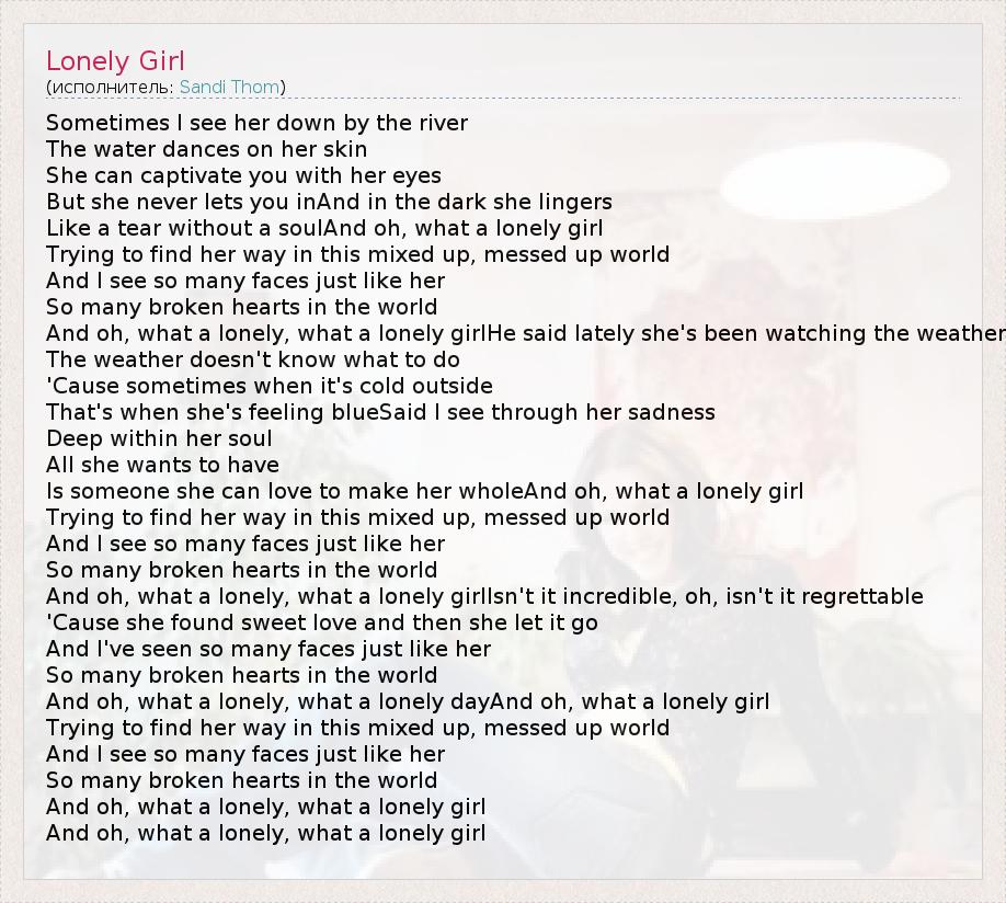 А как ты думаешь, о чем песня "Lonely Girl" ?