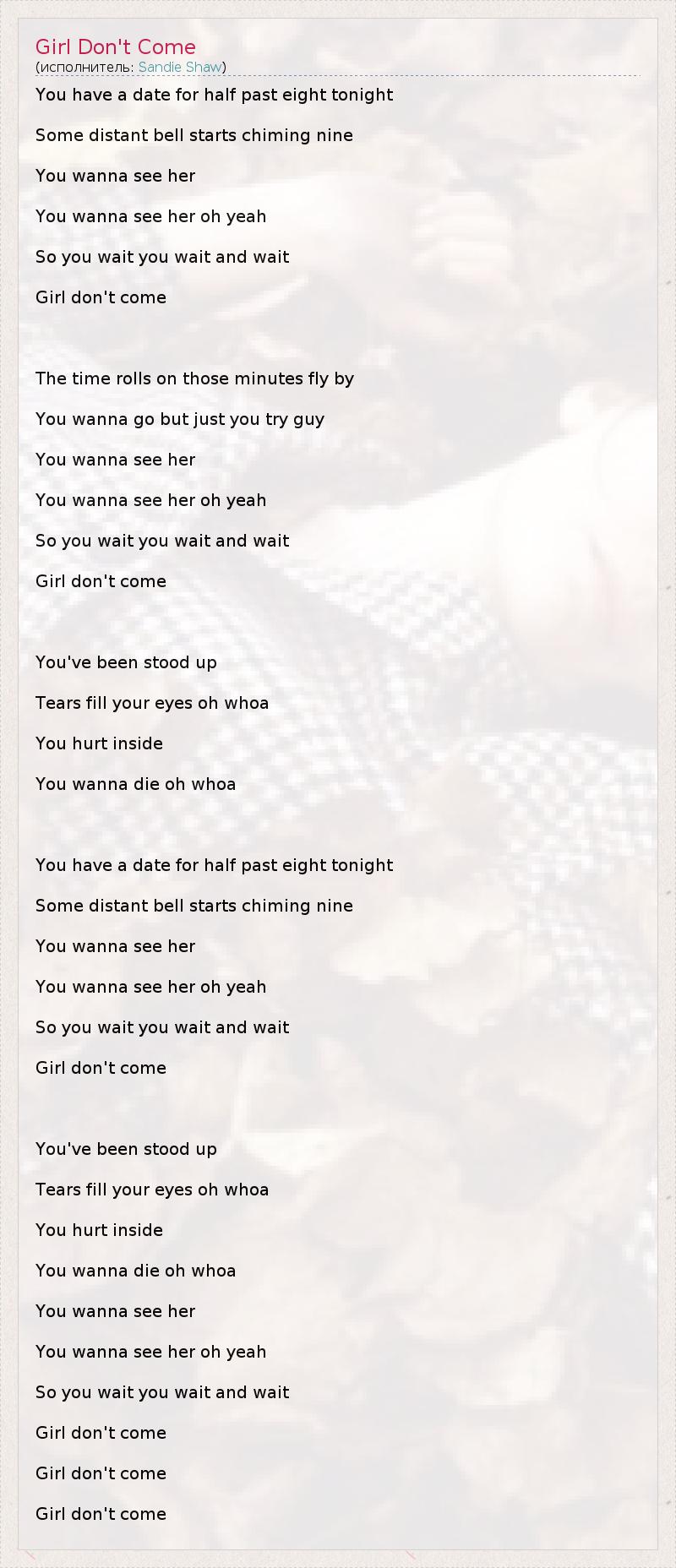А как ты думаешь, о чем песня "Girl Don't Come" ?