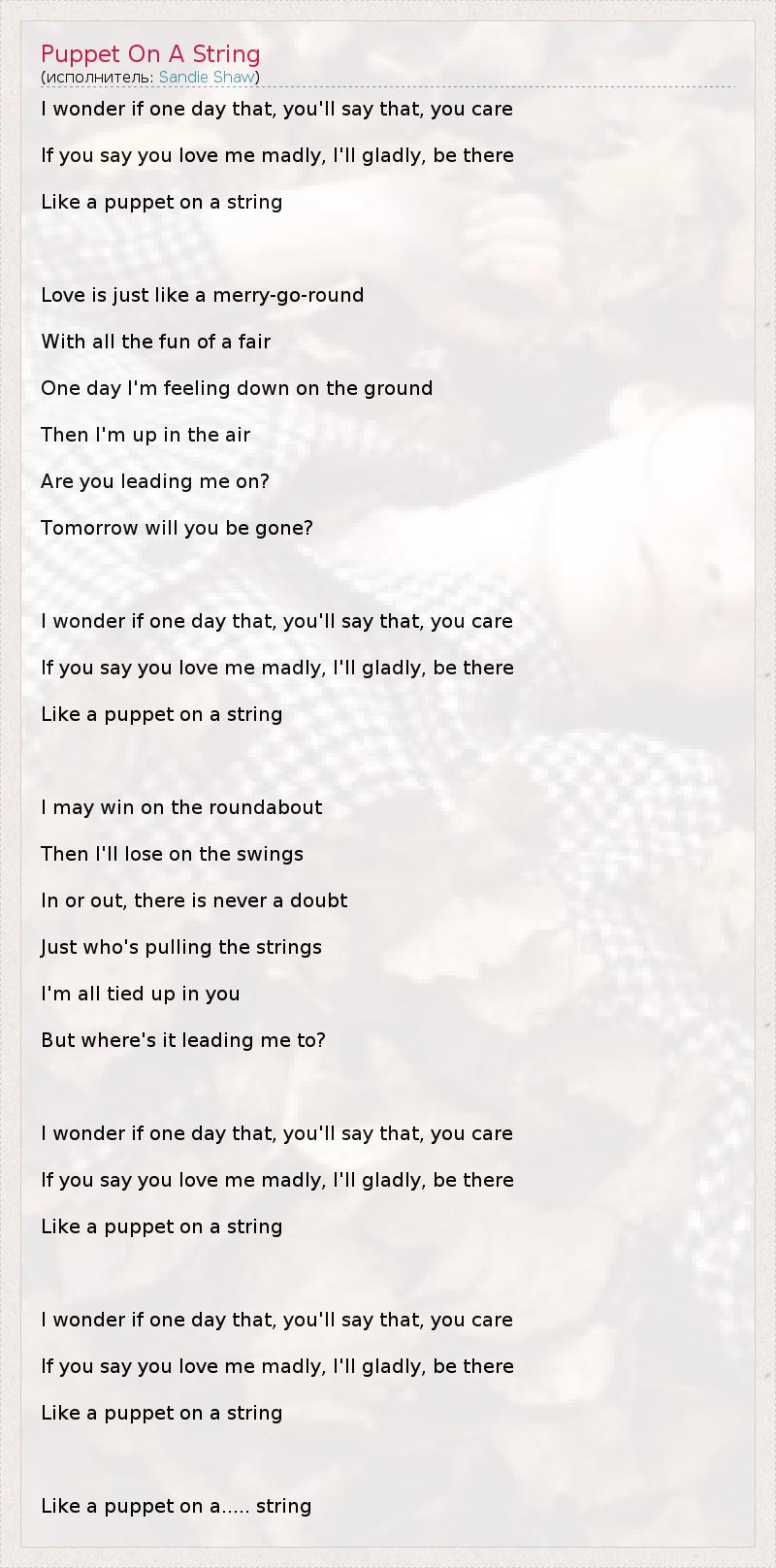 А как ты думаешь, о чем песня "Puppet On A String" ?