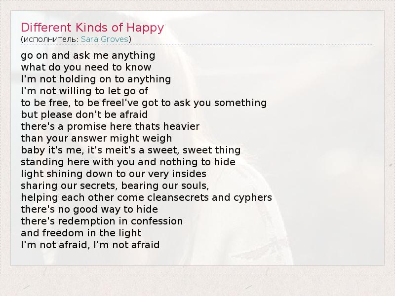 А как ты думаешь, о чем песня "Different Kinds of Happy" ?