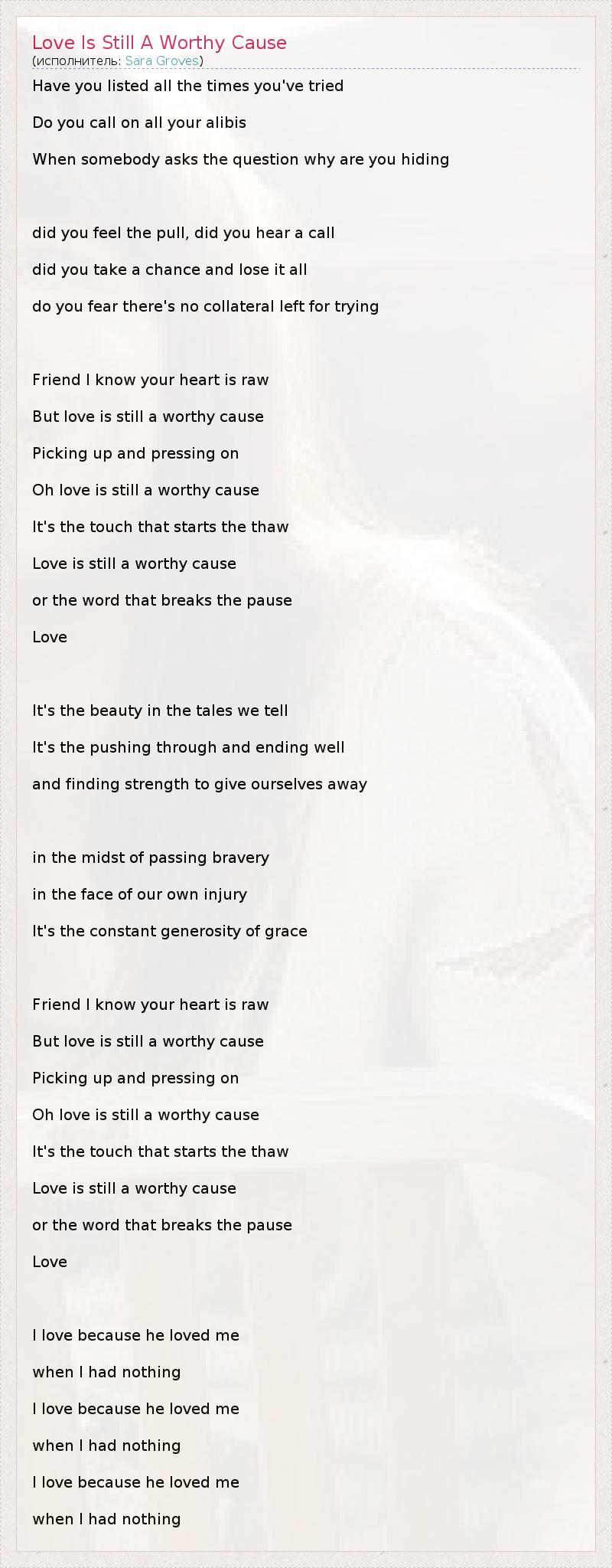 А как ты думаешь, о чем песня "Love Is Still A Worthy Cause" ?
