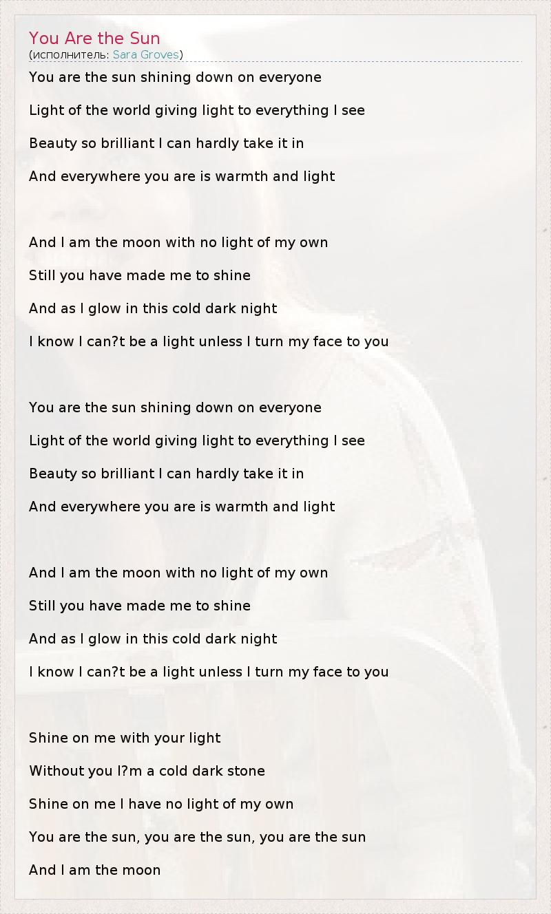А как ты думаешь, о чем песня "You Are the Sun" ?
