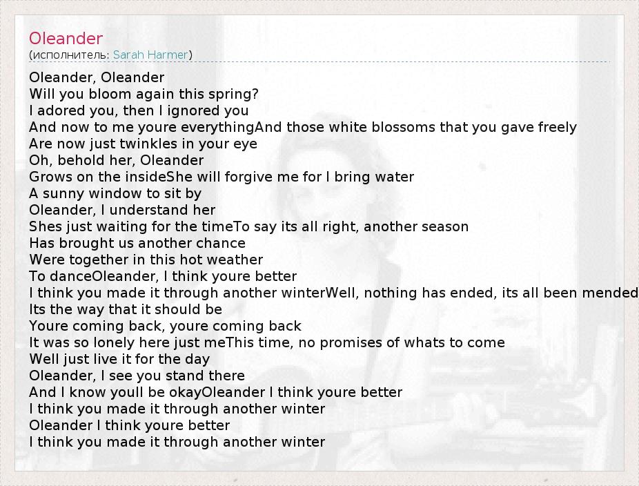 А как ты думаешь, о чем песня "Oleander" ?