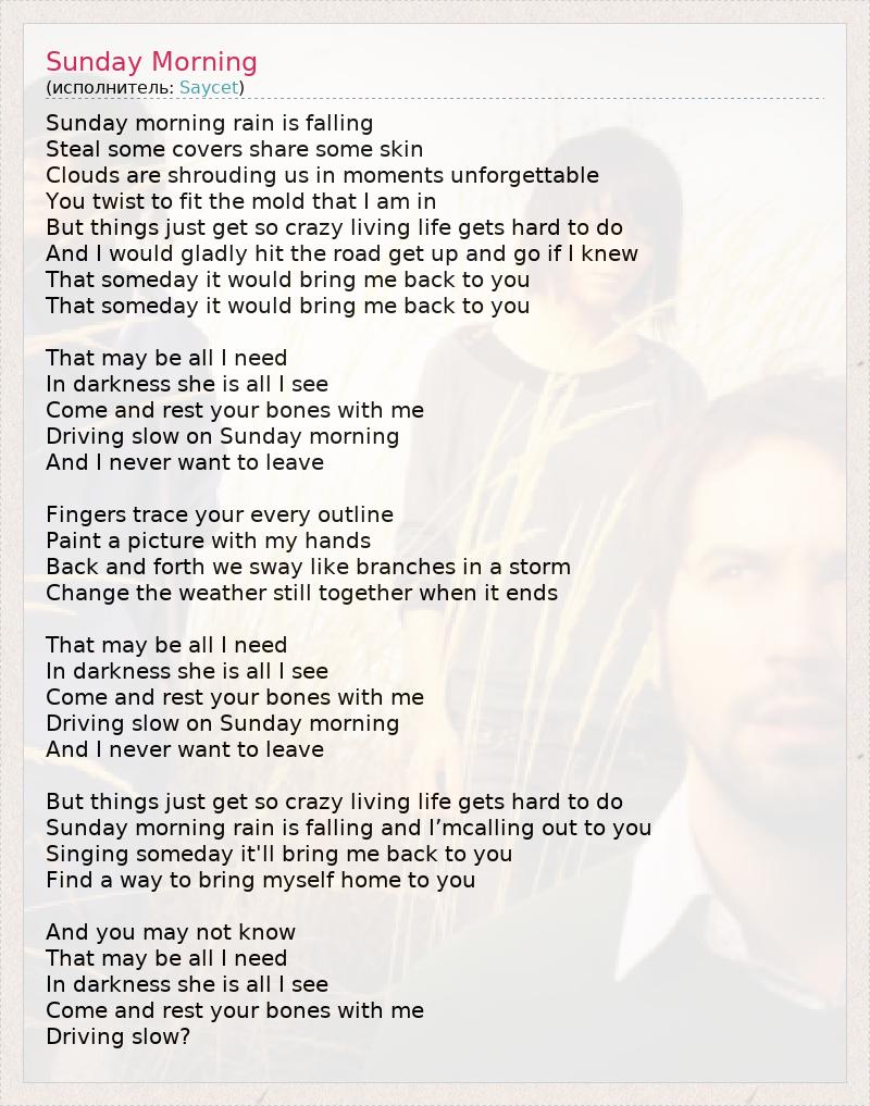 А как ты думаешь, о чем песня "Sunday Morning" ?