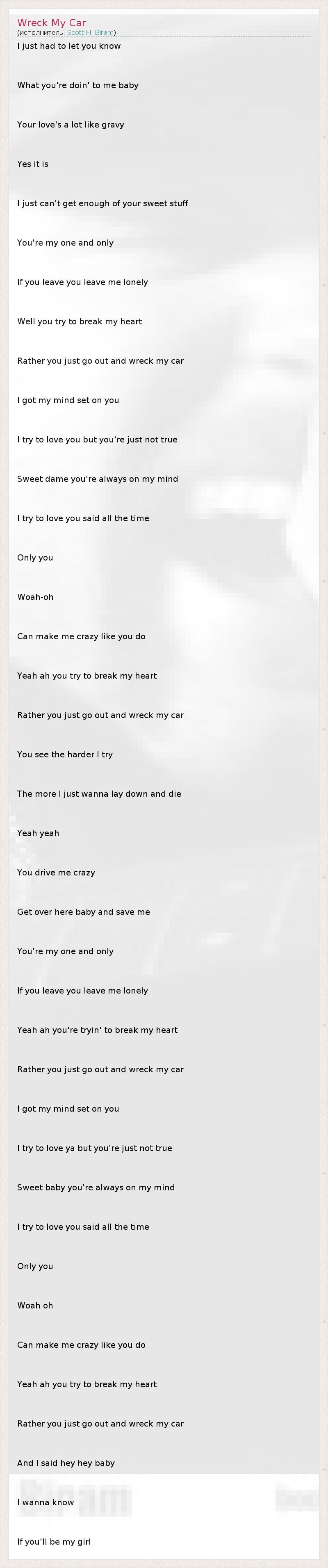 А как ты думаешь, о чем песня "Wreck My Car" ?