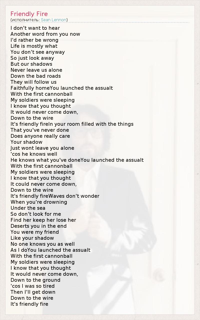 А как ты думаешь, о чем песня "Friendly Fire" ?