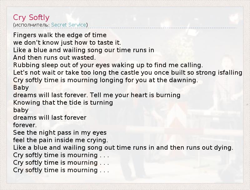 А как ты думаешь, о чем песня "Cry Softly" ?