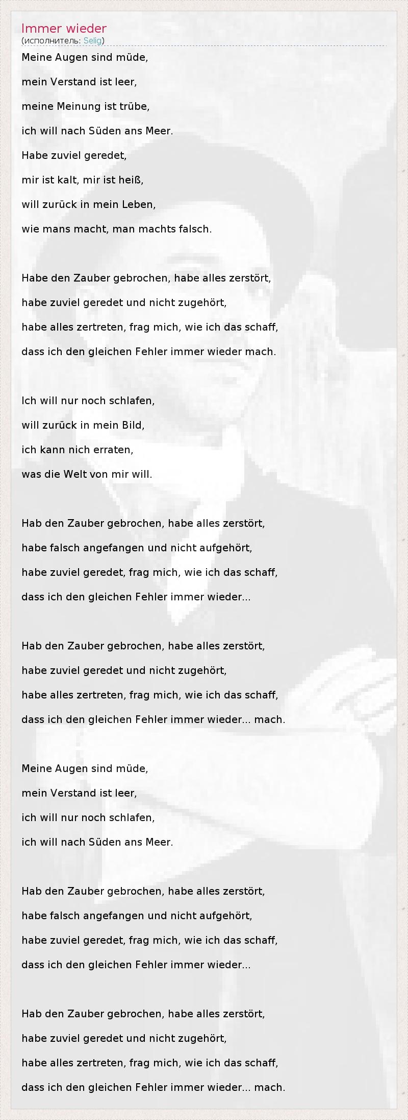 А как ты думаешь, о чем песня "Immer wieder" ?