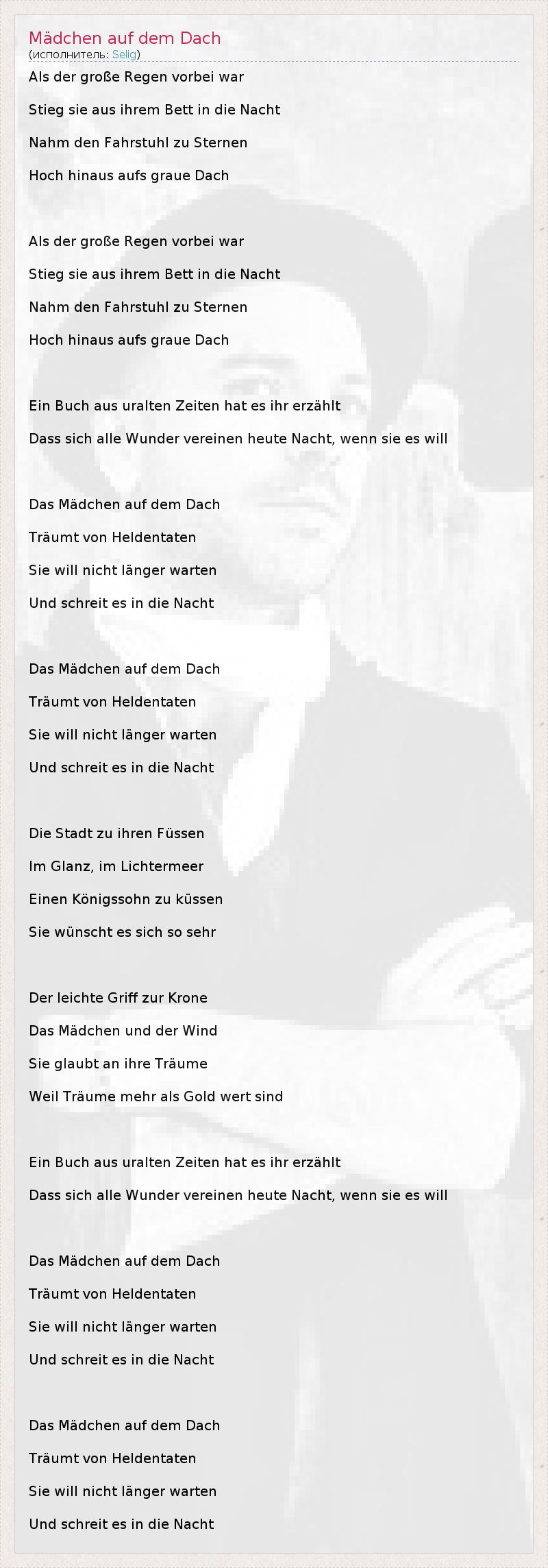 А как ты думаешь, о чем песня "Mädchen auf dem Dach" ?