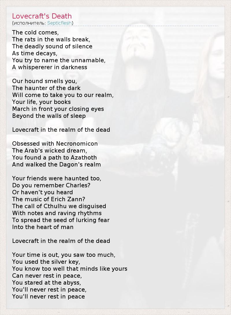 А как ты думаешь, о чем песня "Lovecraft's Death" ?