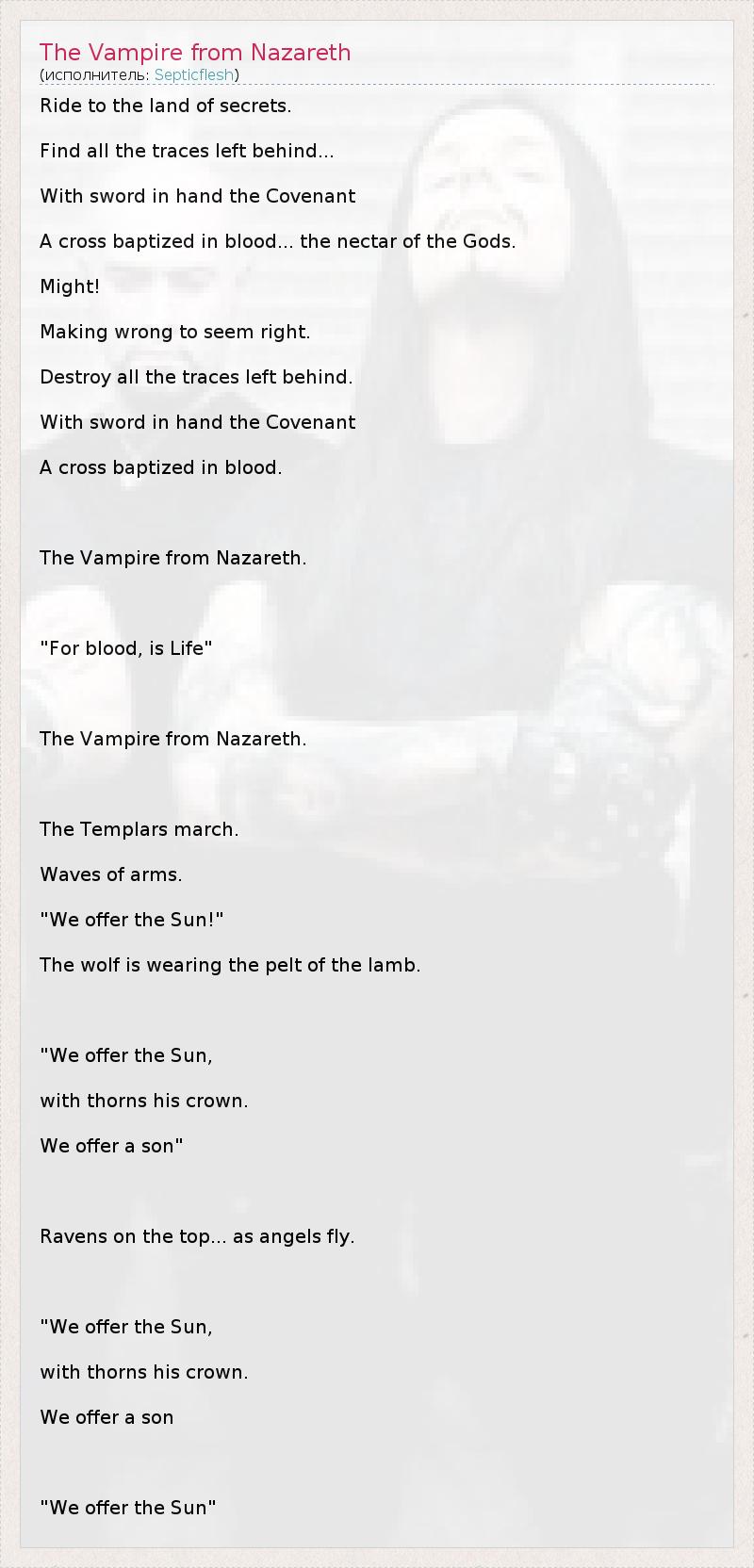 А как ты думаешь, о чем песня "The Vampire from Nazareth" ?