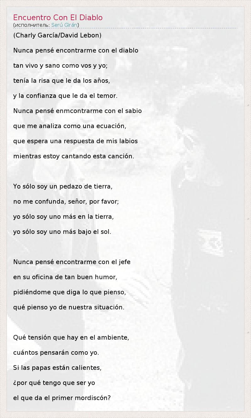 А как ты думаешь, о чем песня "Encuentro Con El Diablo" ?