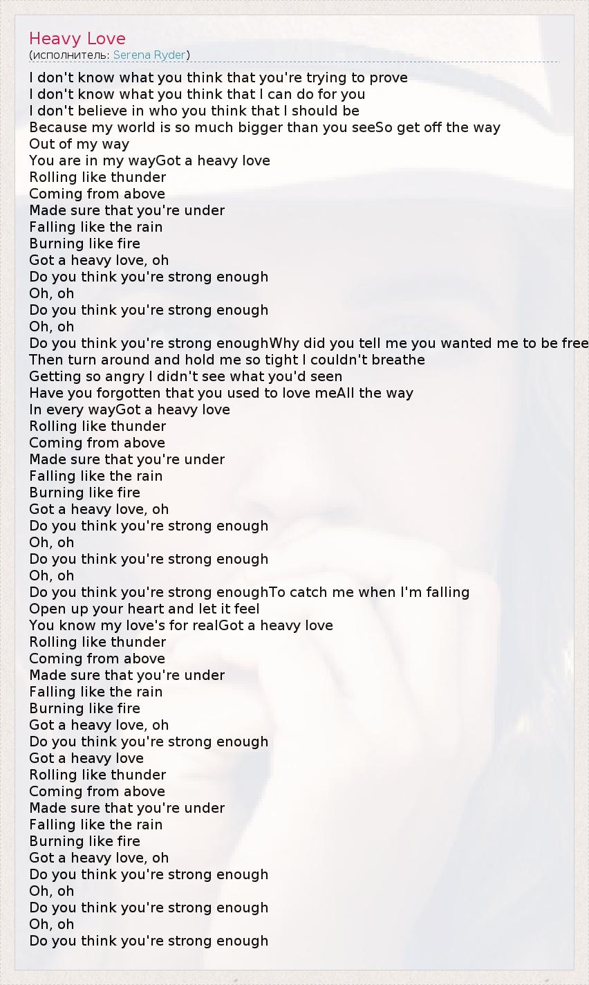 А как ты думаешь, о чем песня "Heavy Love" ?
