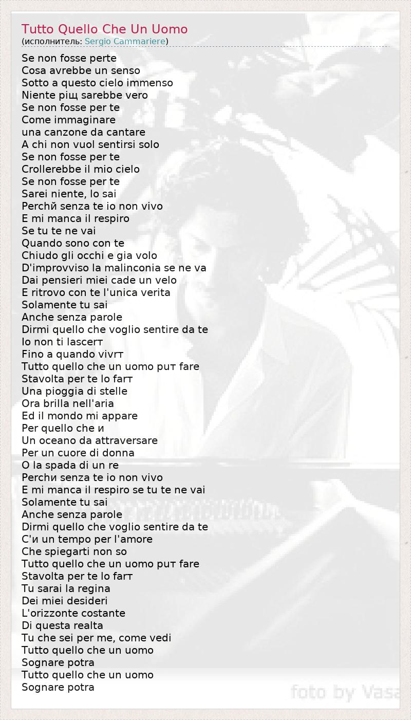 А как ты думаешь, о чем песня "Tutto Quello Che Un Uomo" ?