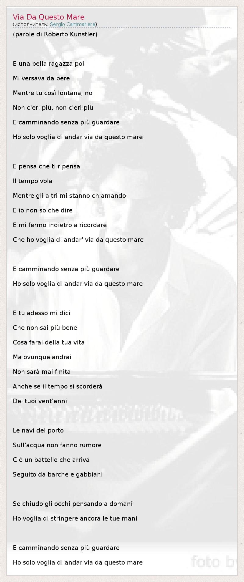 А как ты думаешь, о чем песня "Via Da Questo Mare" ?