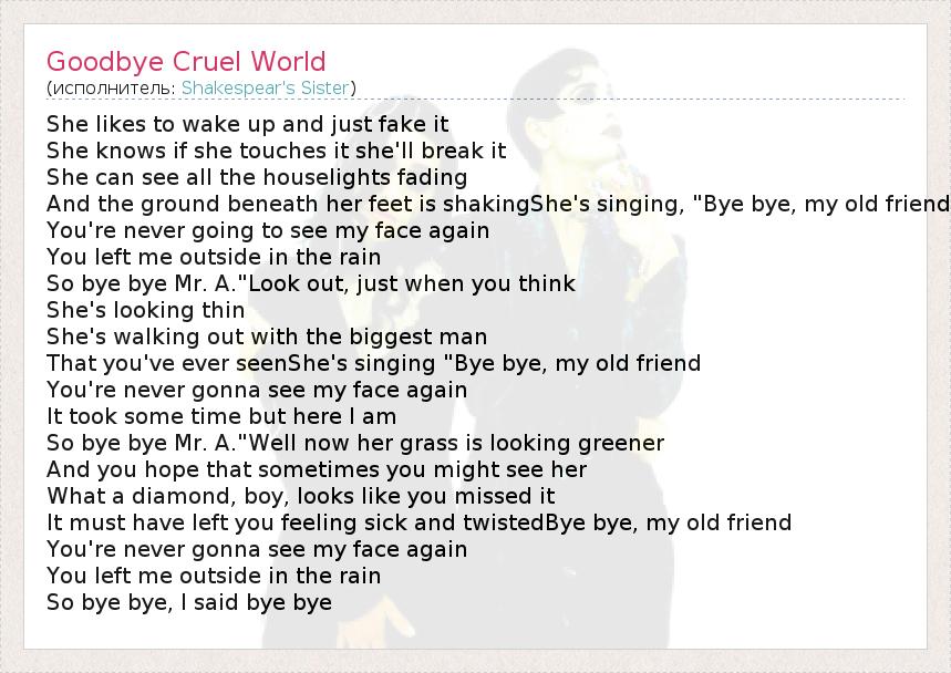 А как ты думаешь, о чем песня "Goodbye Cruel World" ?