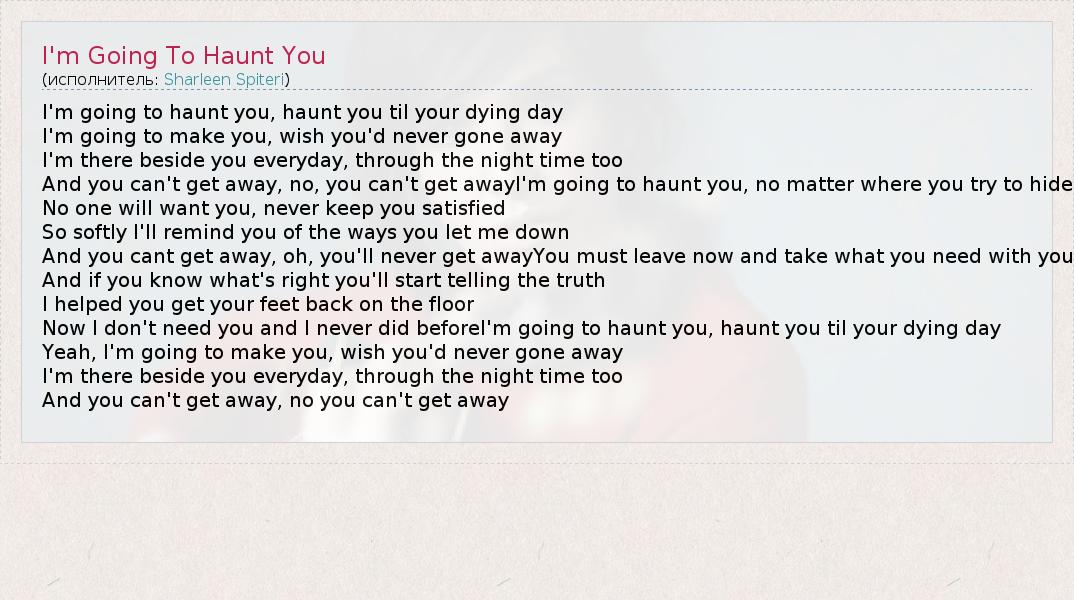 А как ты думаешь, о чем песня "I'm Going To Haunt You" ?