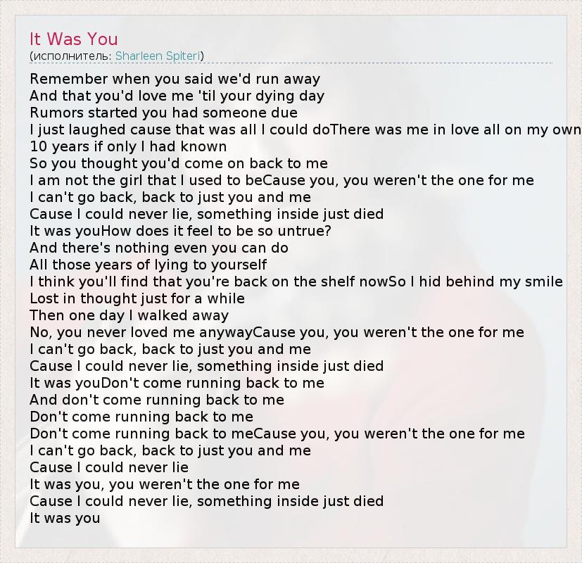 А как ты думаешь, о чем песня "It Was You" ?