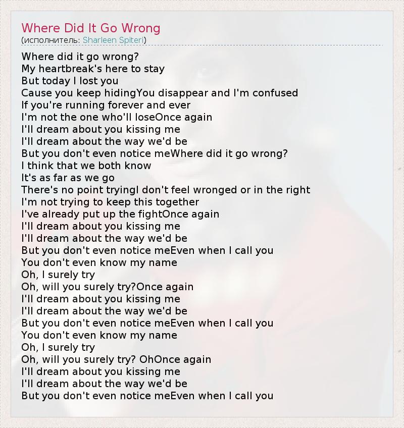 А как ты думаешь, о чем песня "Where Did It Go Wrong" ?