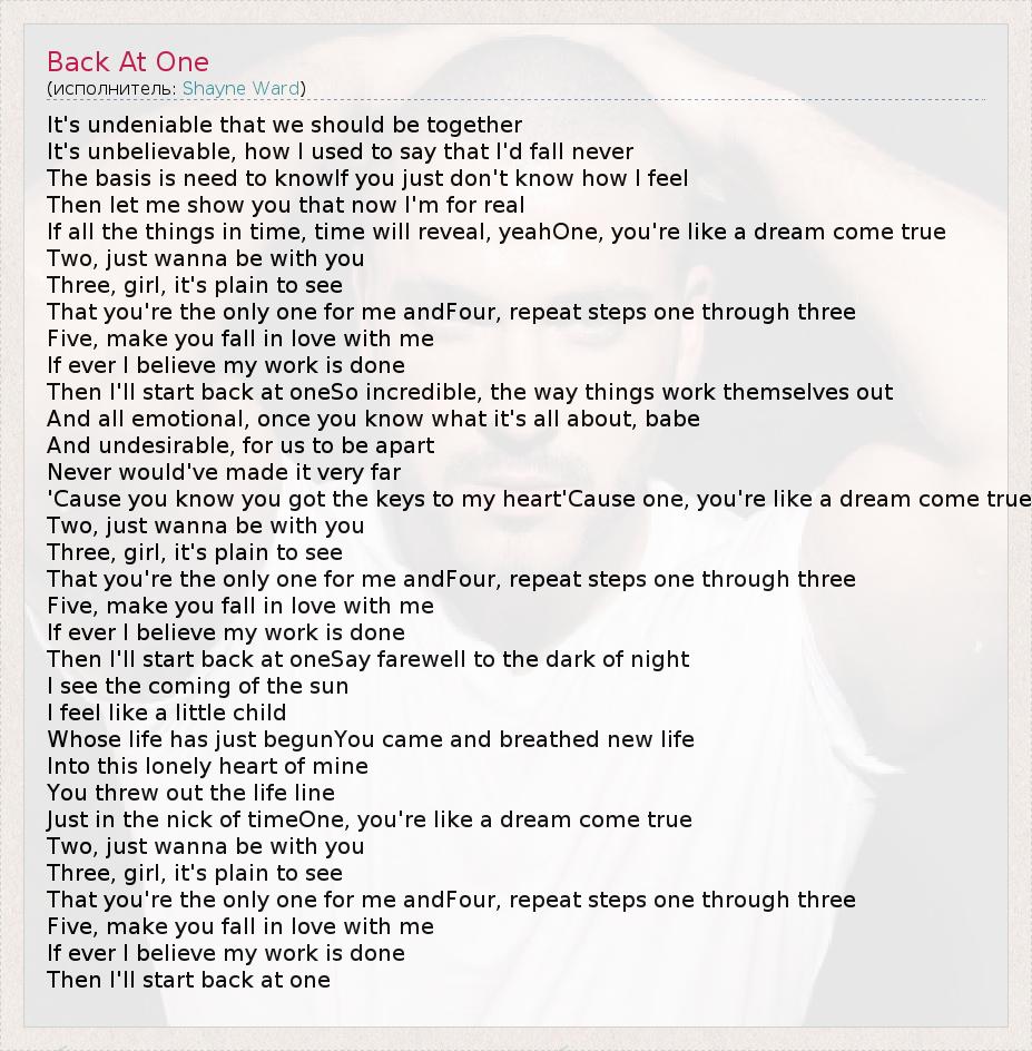 'Cause you know you got the keys to my heart'Cause one, you're like a dream come true