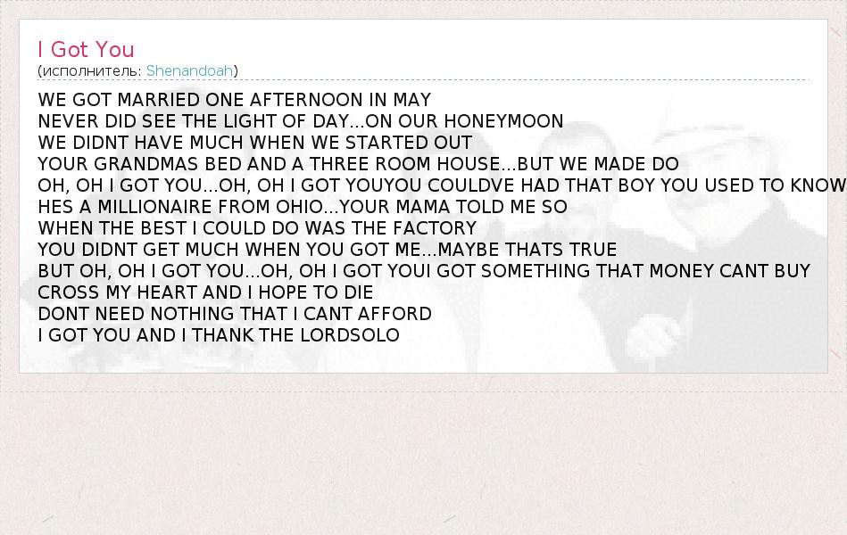 BUT OH, OH I GOT YOU...OH, OH I GOT YOUI GOT SOMETHING THAT MONEY CANT BUY