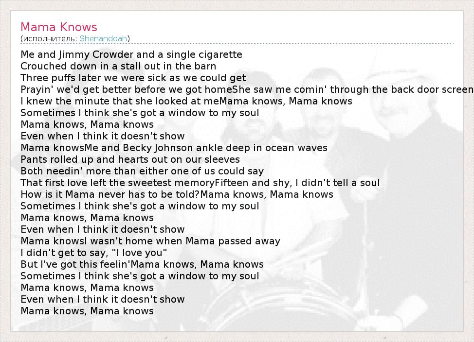 А как ты думаешь, о чем песня "Mama Knows" ?