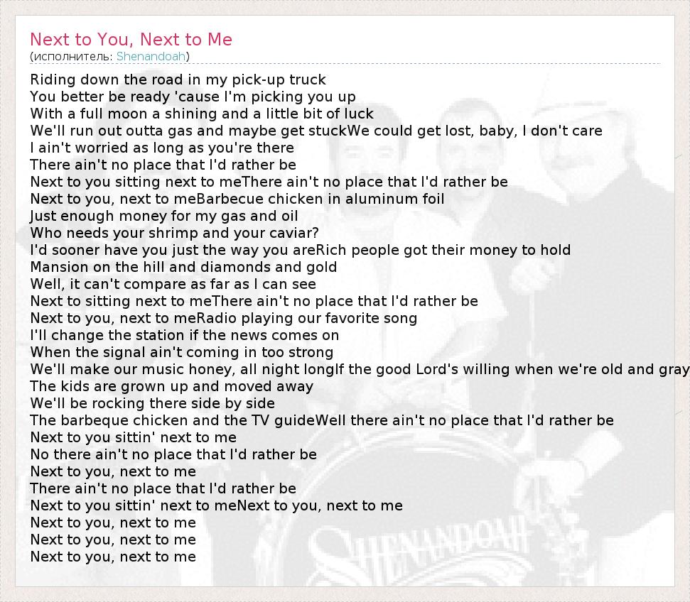 ГлавнаяИсполнителиShenandoahNext to You, Next to Me