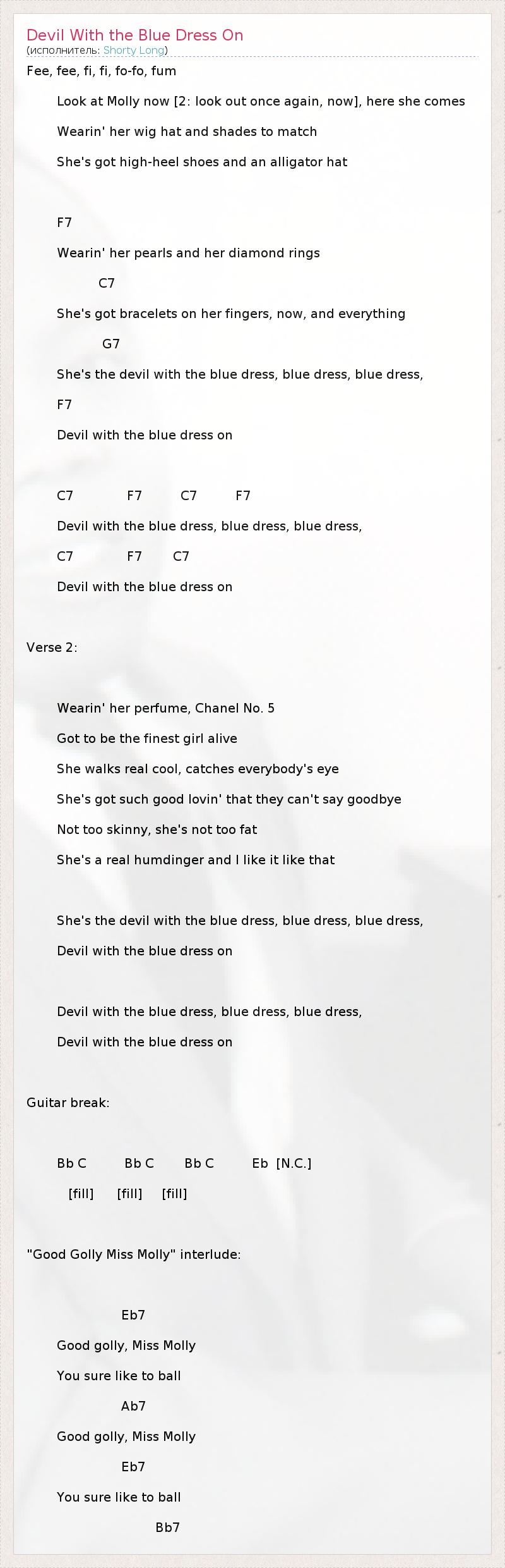 А как ты думаешь, о чем песня "Devil With the Blue Dress On" ?