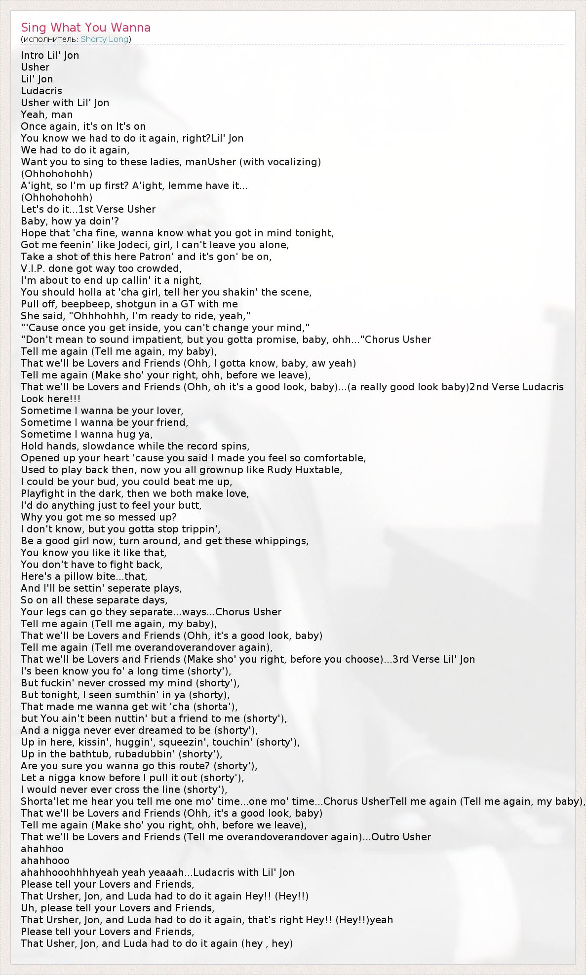 That we'll be Lovers and Friends (Make sho' you right, before you choose)...3rd Verse Lil' Jon