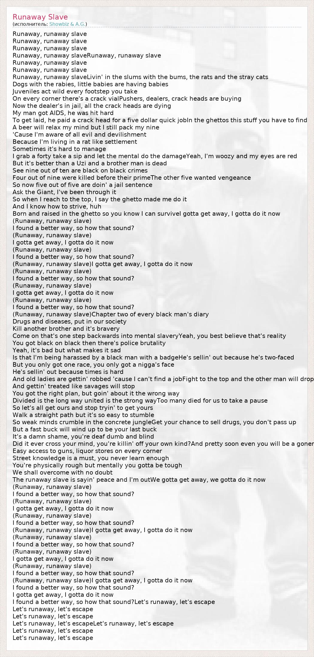 А как ты думаешь, о чем песня "Runaway Slave" ?
