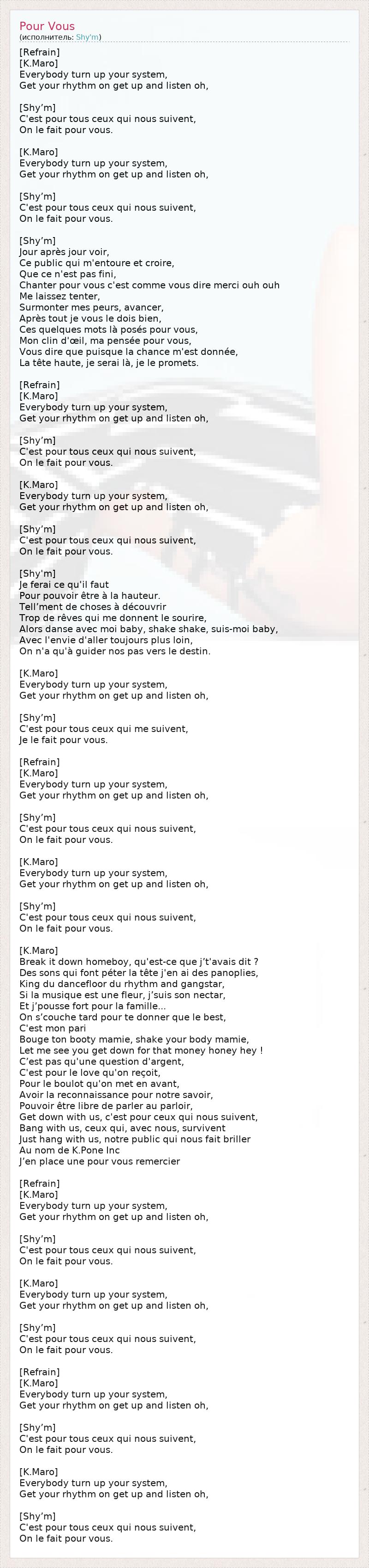 А как ты думаешь, о чем песня "Pour Vous" ?