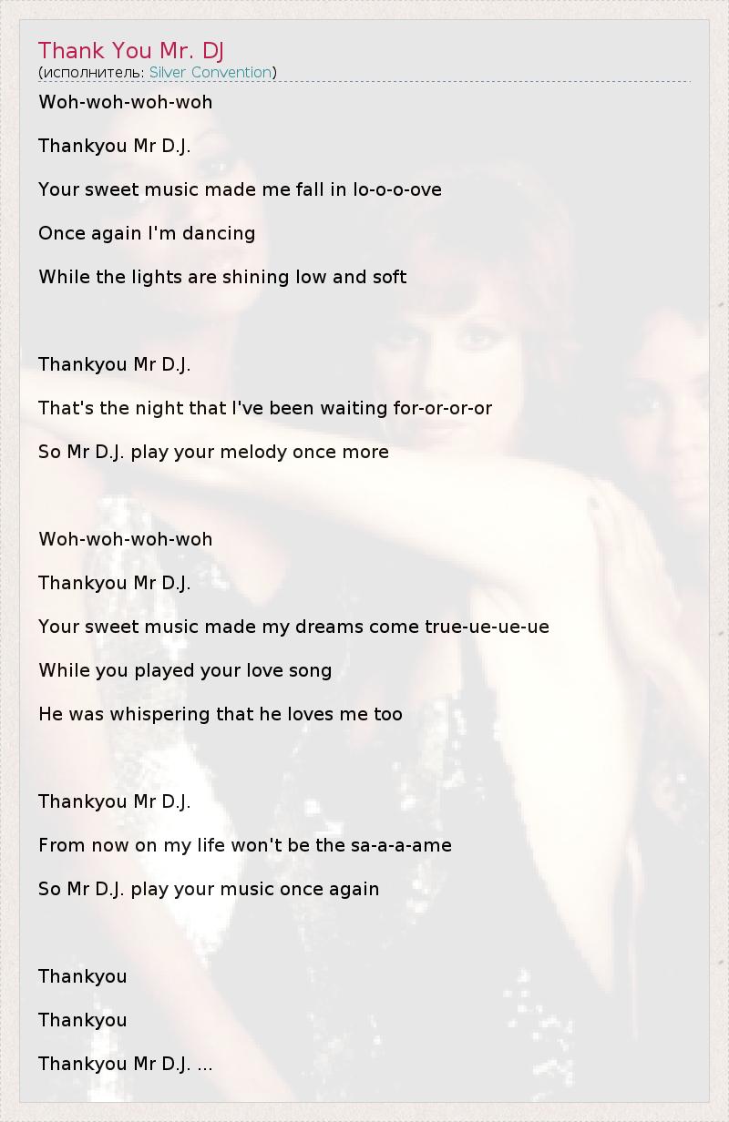 А как ты думаешь, о чем песня "Thank You Mr. DJ" ?