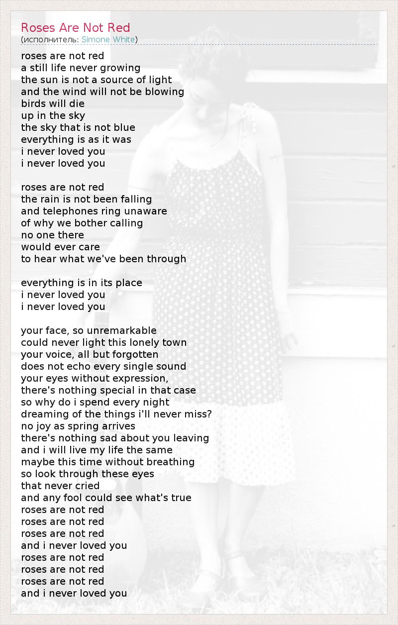 А как ты думаешь, о чем песня "Roses Are Not Red" ?