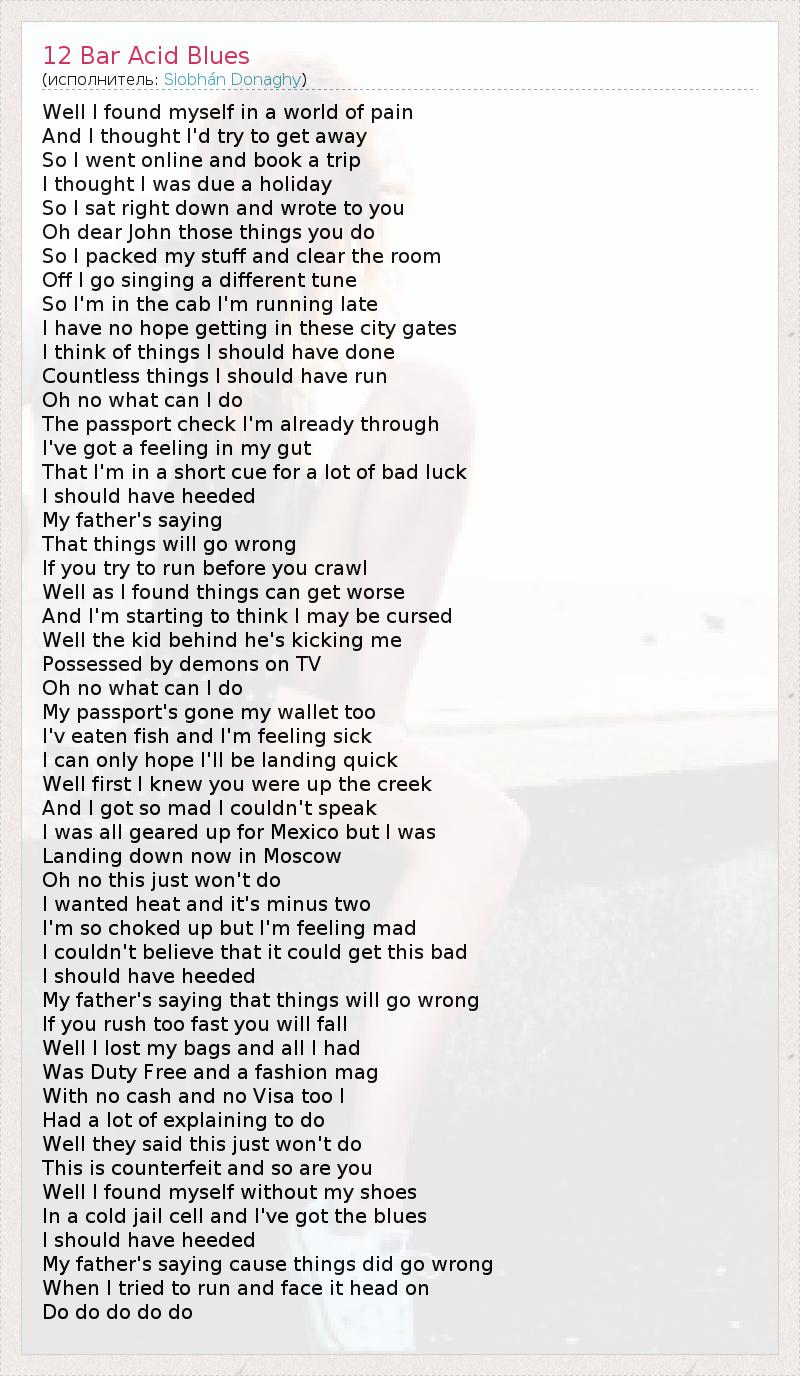 А как ты думаешь, о чем песня "12 Bar Acid Blues" ?