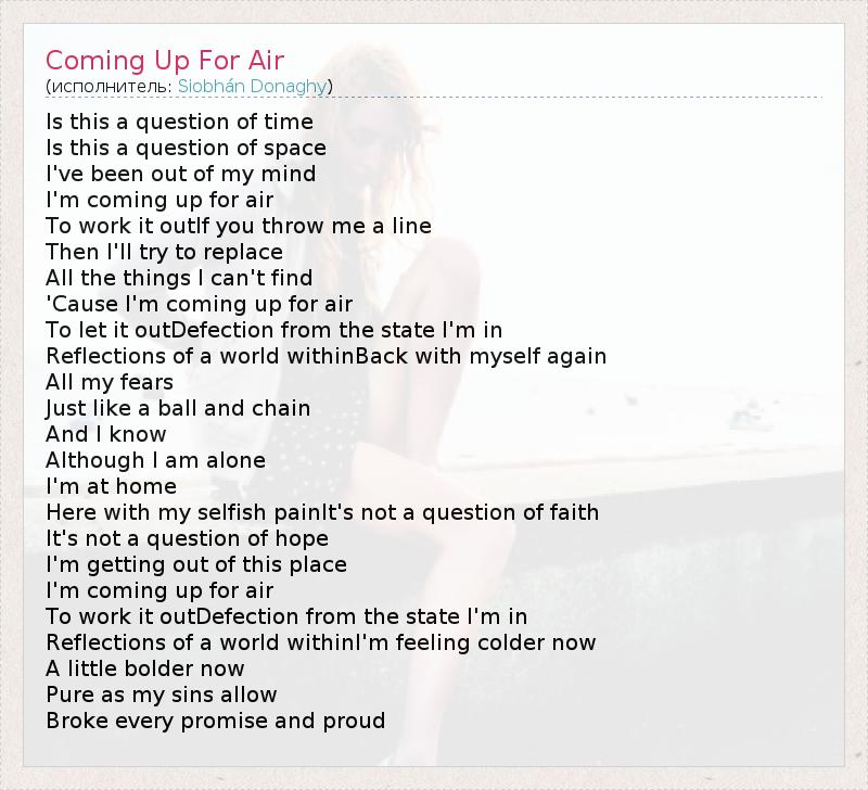 А как ты думаешь, о чем песня "Coming Up For Air" ?