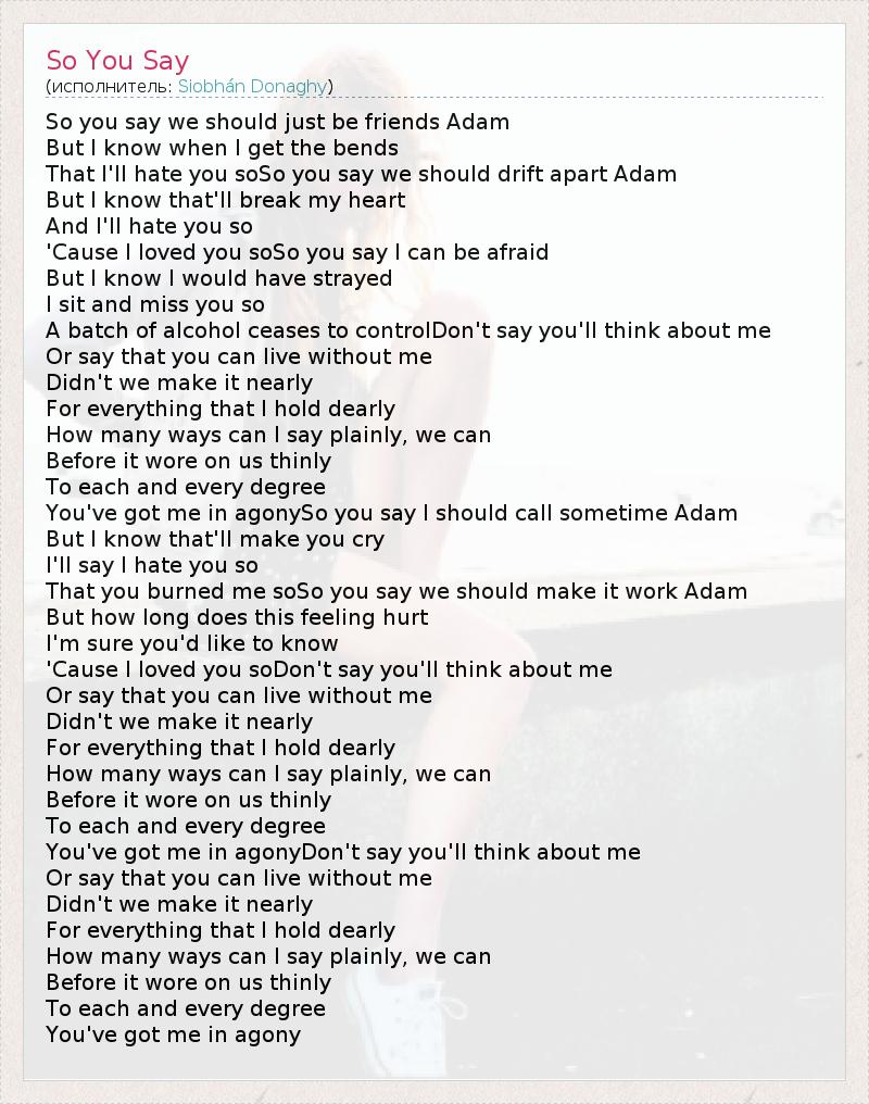 That I'll hate you soSo you say we should drift apart Adam